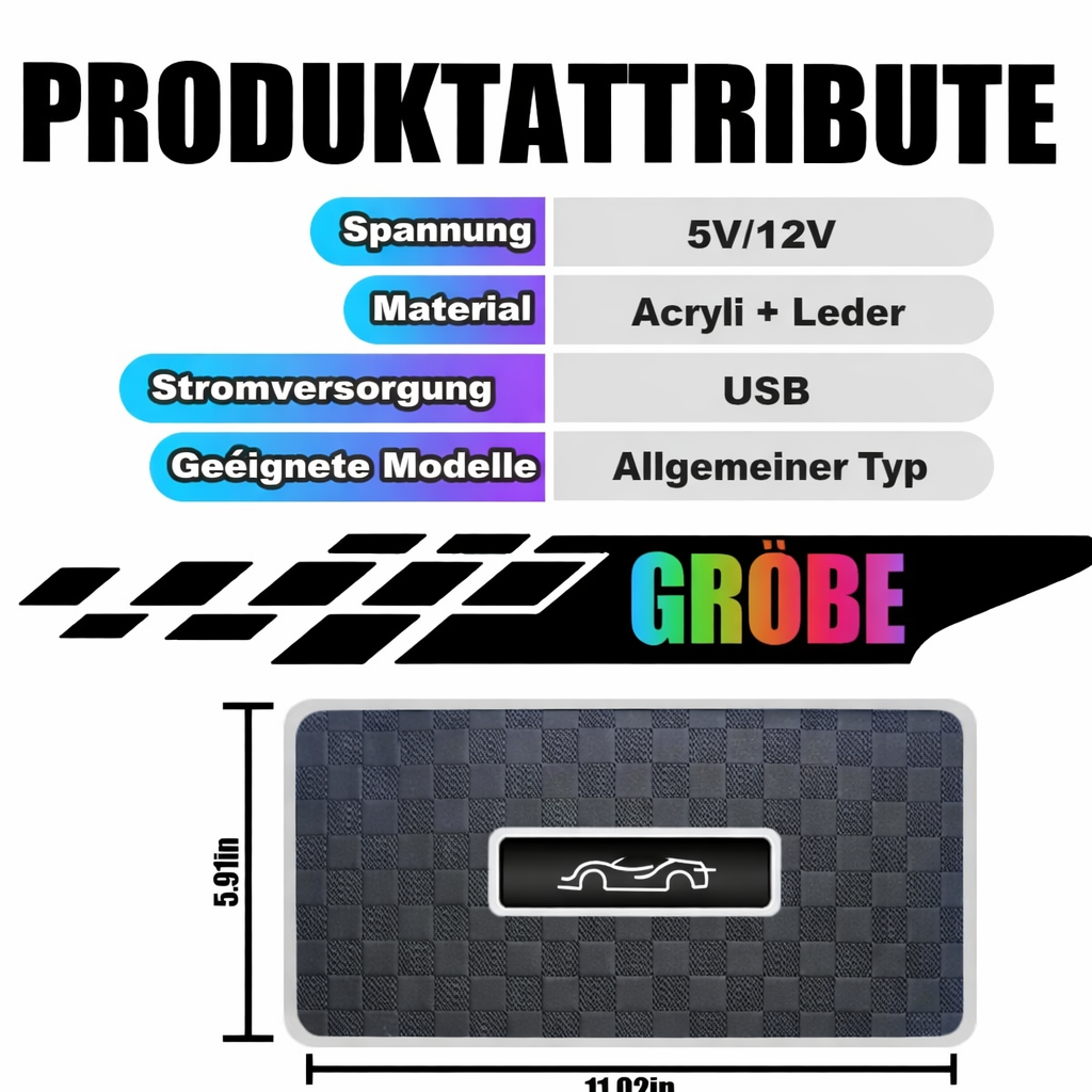 Betrieb mit 5V/12V über USB, gefertigt aus Acryl und Leder. Universell passend für die meisten Fahrzeugmodelle, mit optimaler Größe für den Fußraum